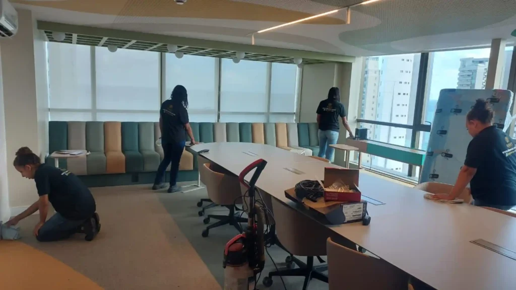 Enquanto uma faxina limpa, nós restauramos o ambiente: removemos cimento, tinta, pó técnico e protegemos superfícies delicadas com processos profissionais.